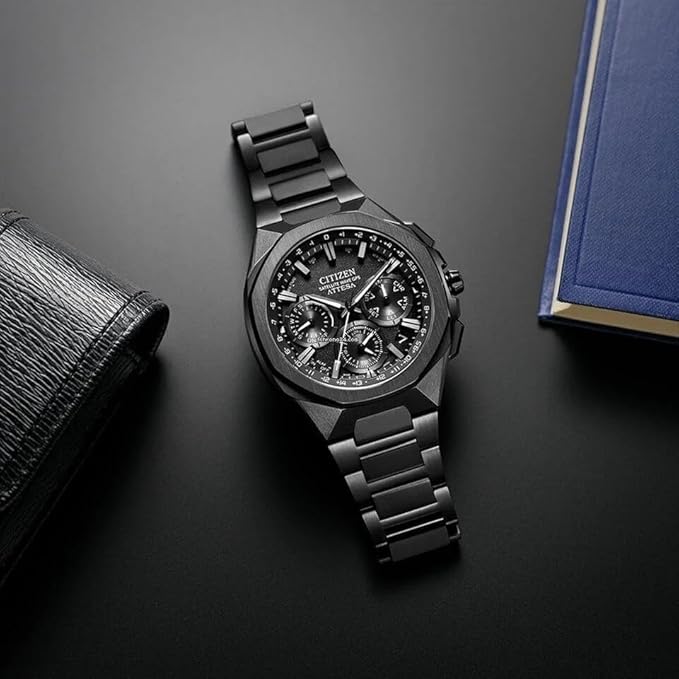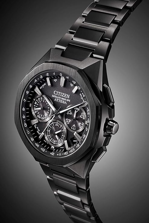 Premier modèle ATTESA avec lunette en céramique et Eco-Drive Satellite Wave GPS à énergie solaire. La série de modèles ATTESA intègre toujours les dernières technologies. Cette montre chronographe dispose d’une fonction calendrier : date et est équipée d’une alimentation solaire, d’un chronomètre, d’un affichage 24 heures, d’aiguilles lumineuses et d’une alarme.
