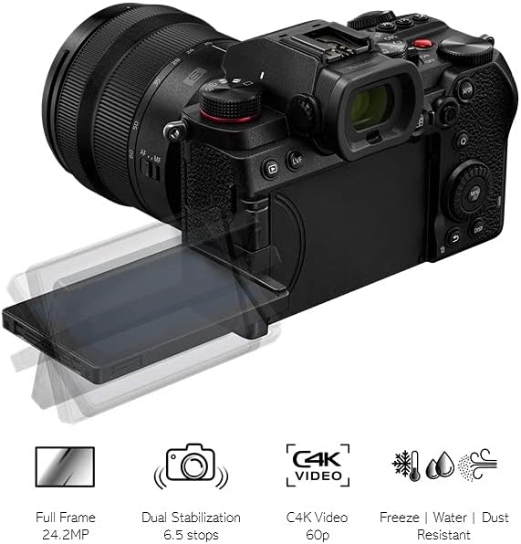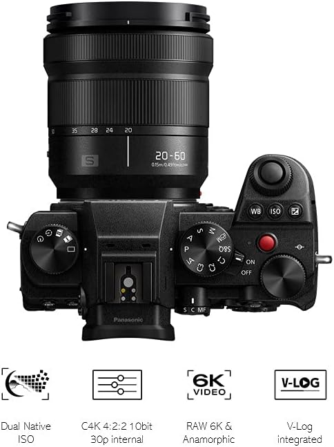 Panasonic Lumix S5K | Appareil Photo Hybride Plein Format + Objectif Lumix S 20-60mm F3.5-5.6 + Batterie (24MP, Vidéo 4K 4:2:2 10bit, Double Stabilisation, V-Log, Tropicalisé) – Version Noir