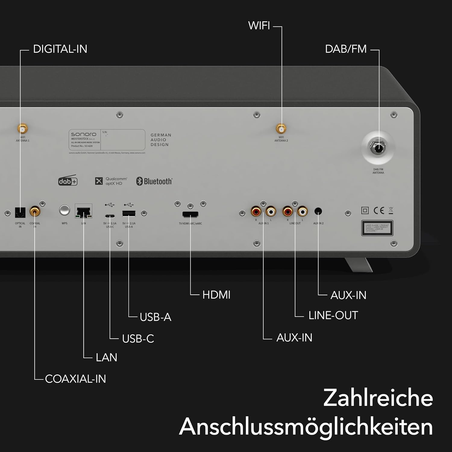 sonoro MEISTERSTÜCK (Gen.2) Chaîne Hi-FI (Airplay, Chromecast, Spotify, Tidal, FM, Dab+, USB) Graphite
